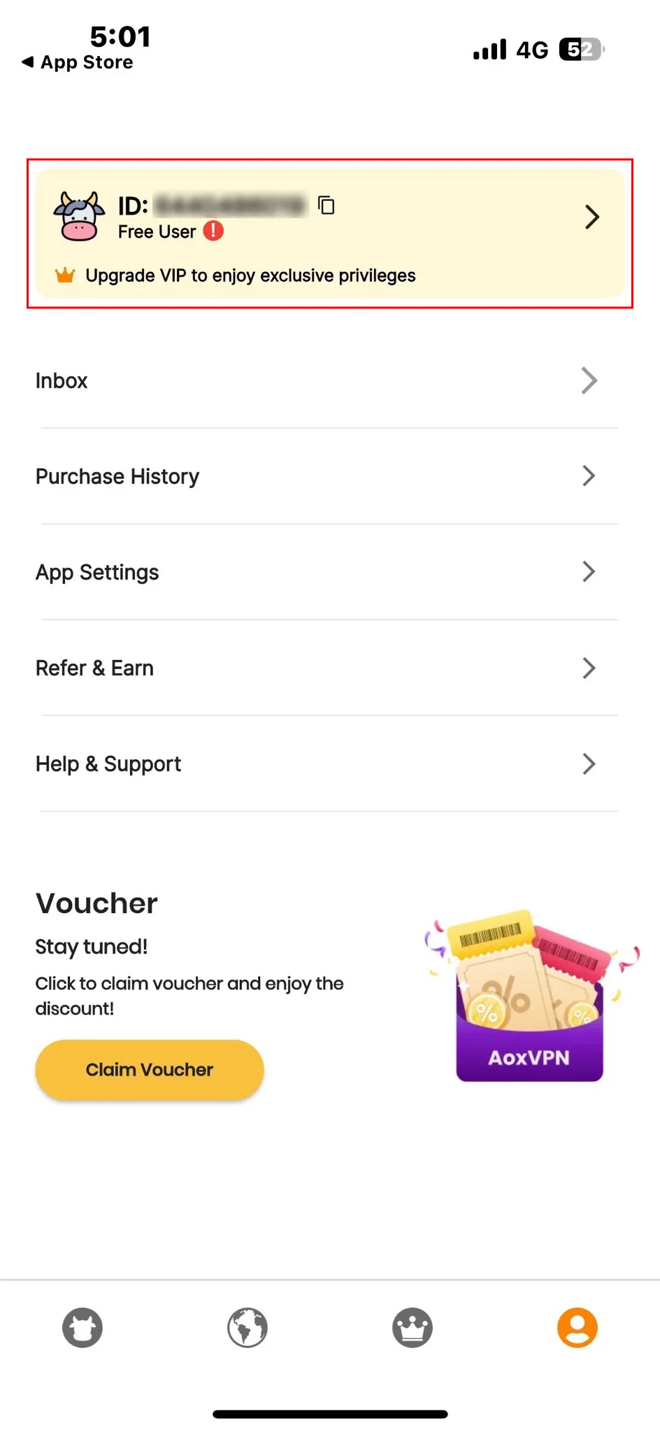 Go to account page on AoxVPN mobile app. Click on the top banner to enter account setting page.