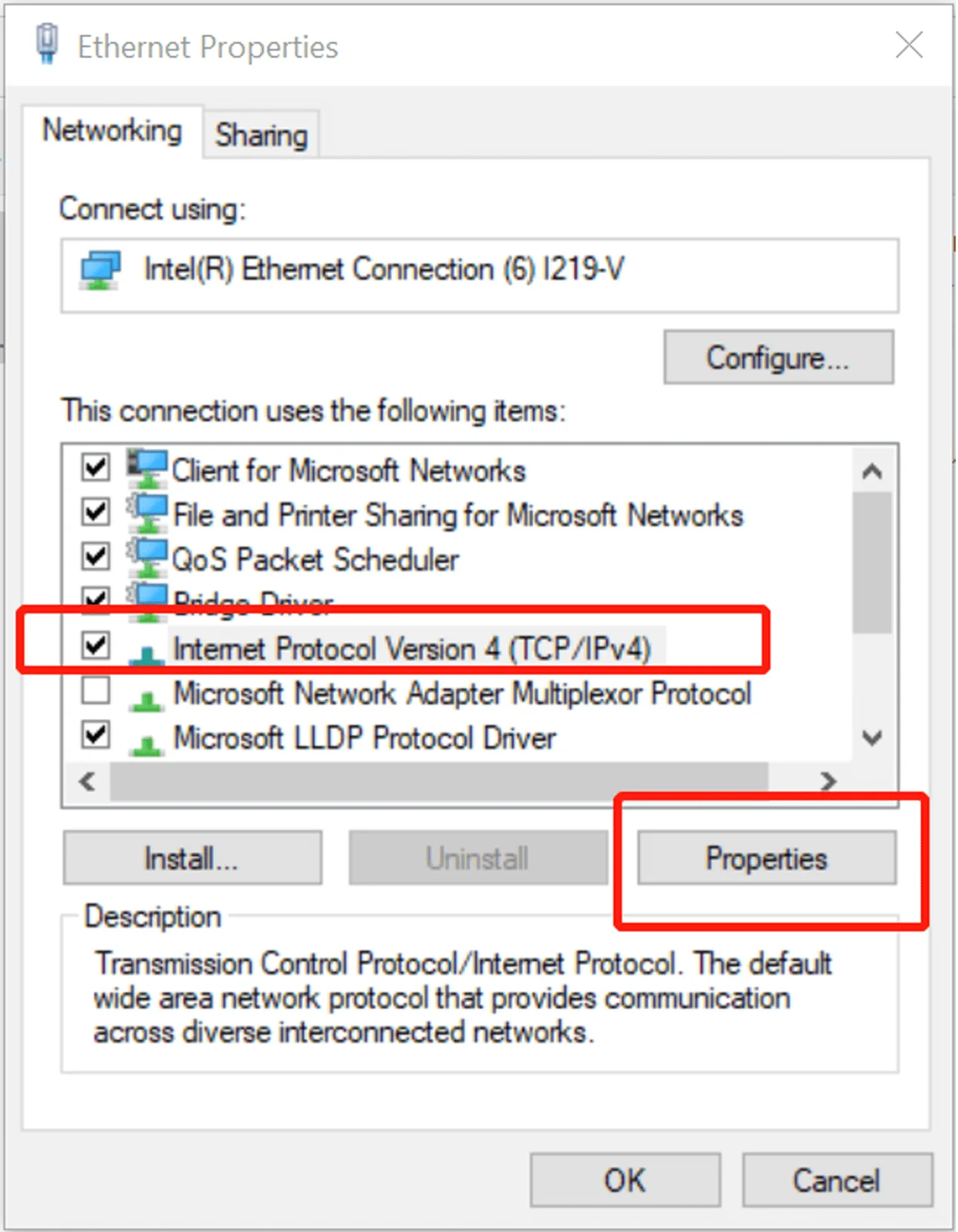 Search "Internet Protocol Version 4 (TCP/IPv4)" and click Properties.