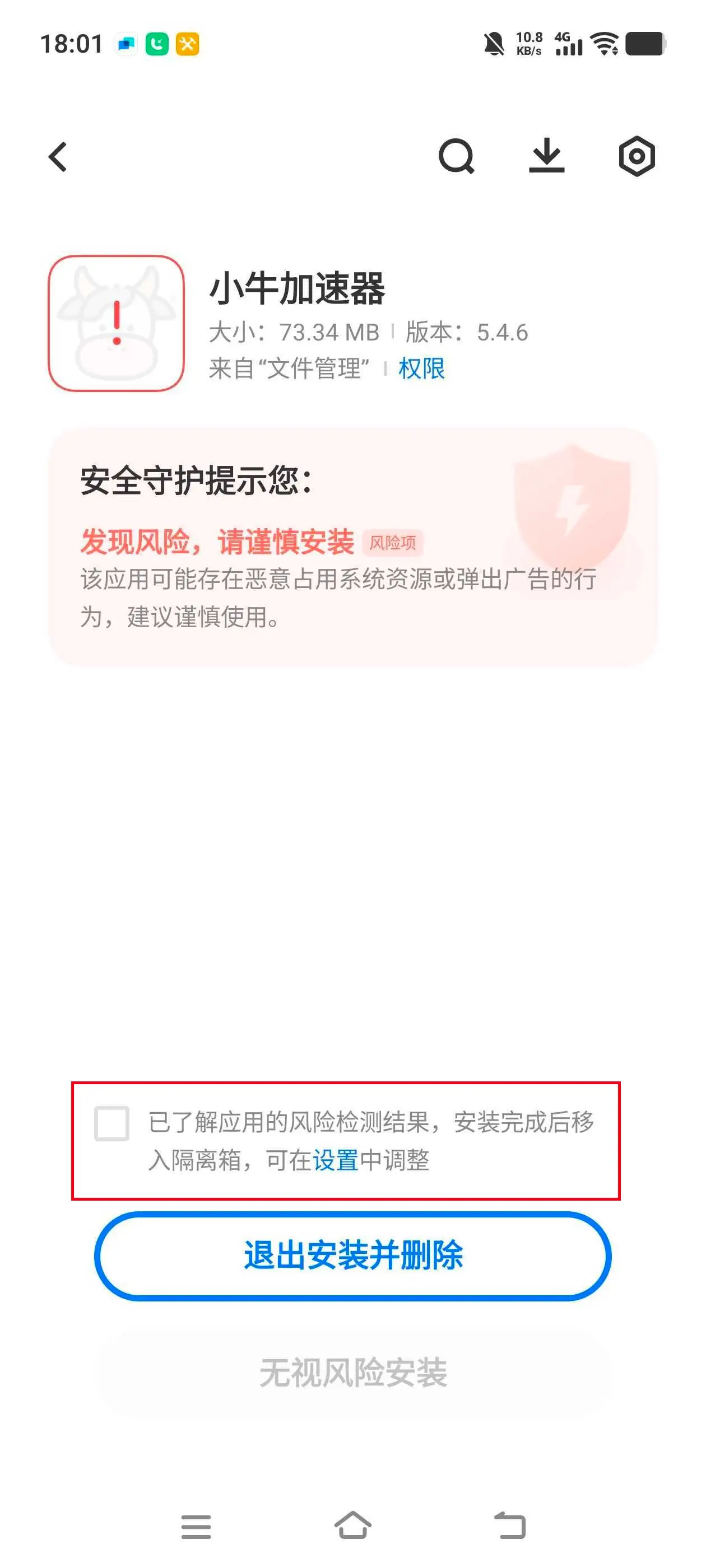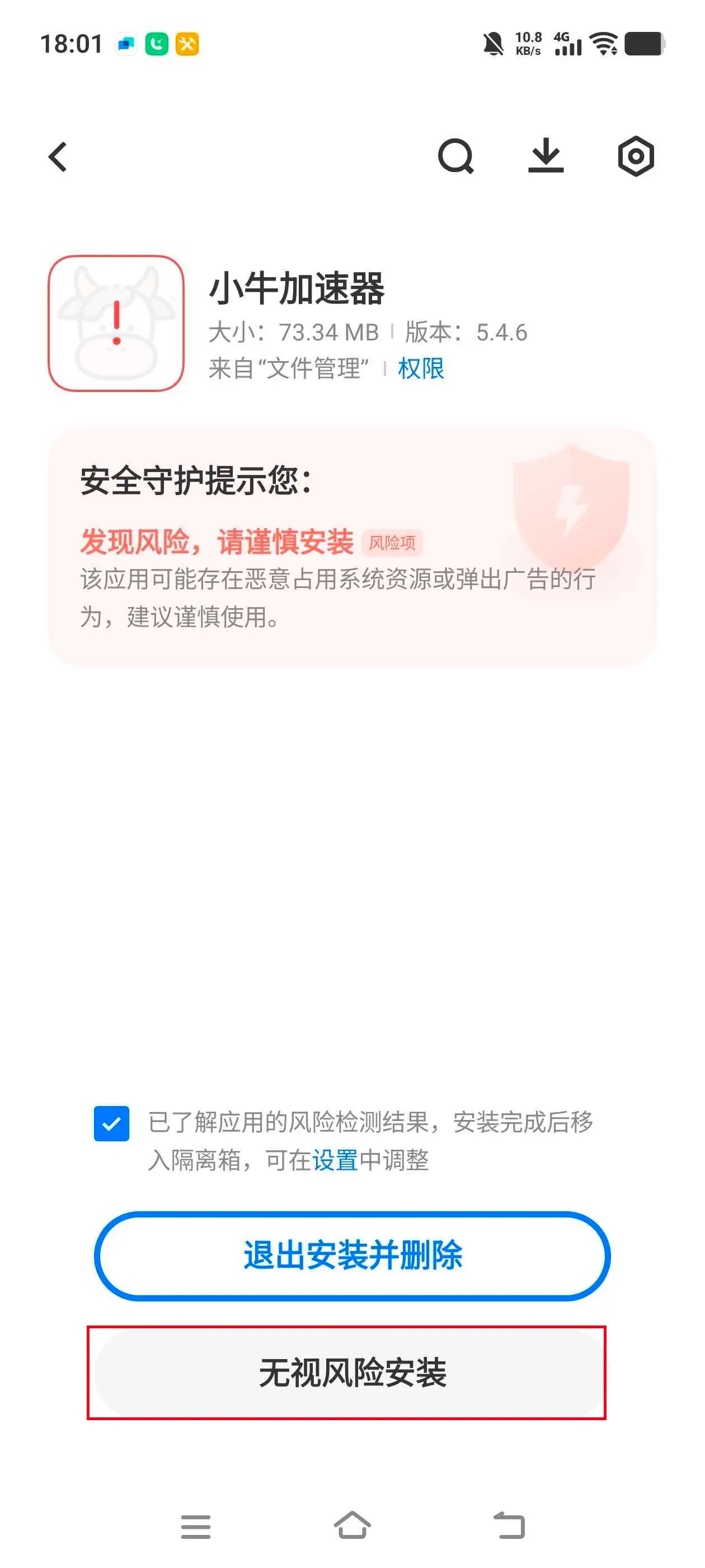 点击“已了解应用风险检查结果”。