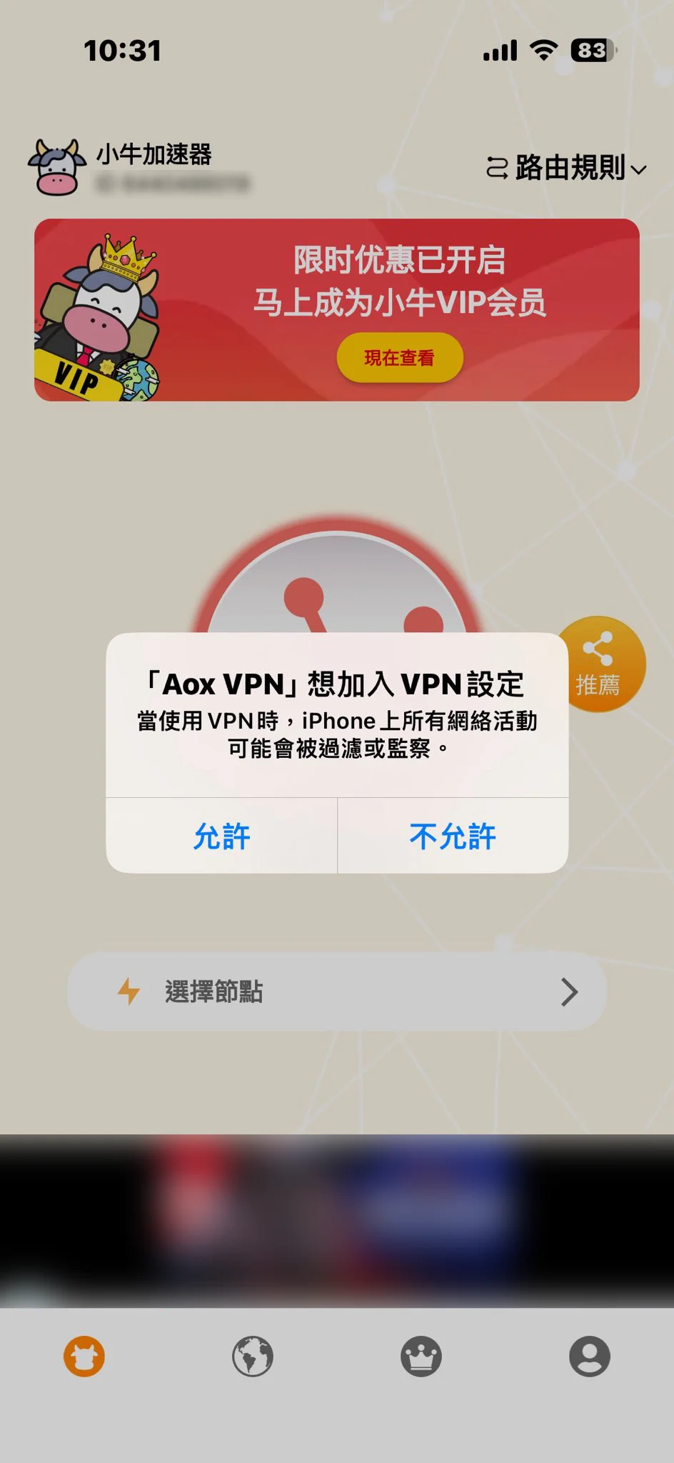 遇到此情況可能說明您的手機中在下載完成後,打開 app,出現選擇是否將小牛加速器加入您 VPN 設置中,您選擇了 “不允许”。解決辦法: 先滑動徹底退出小牛加速器,重新進入,此時選擇允許小牛加速器加入到您 VPN 設置中,您就可以正常使用 VPN 了。