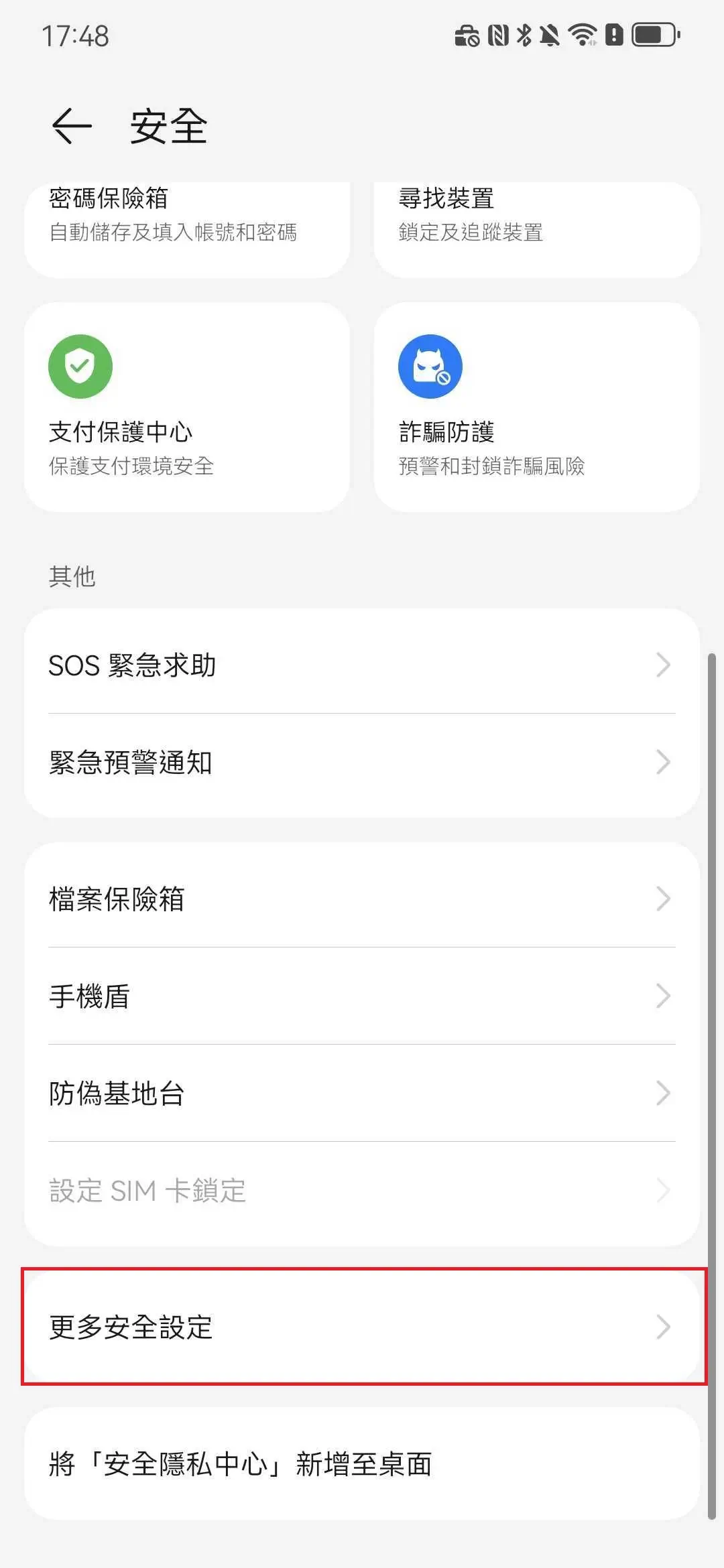 設定 → 更多設定 → 系統安全 → 安裝未知應用 → 選擇來源應用 → 開啟允許